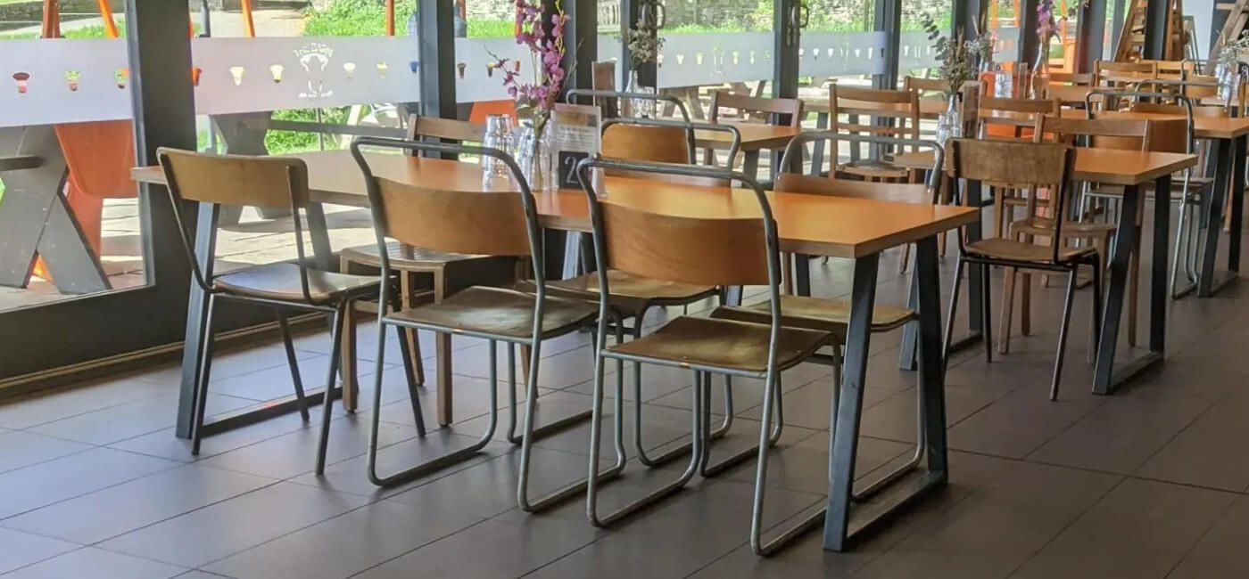 Whirlow Hall Farm asked us to supply 25 table legs and tops along with shelf units and cabinets to fit around their existing appliances.
